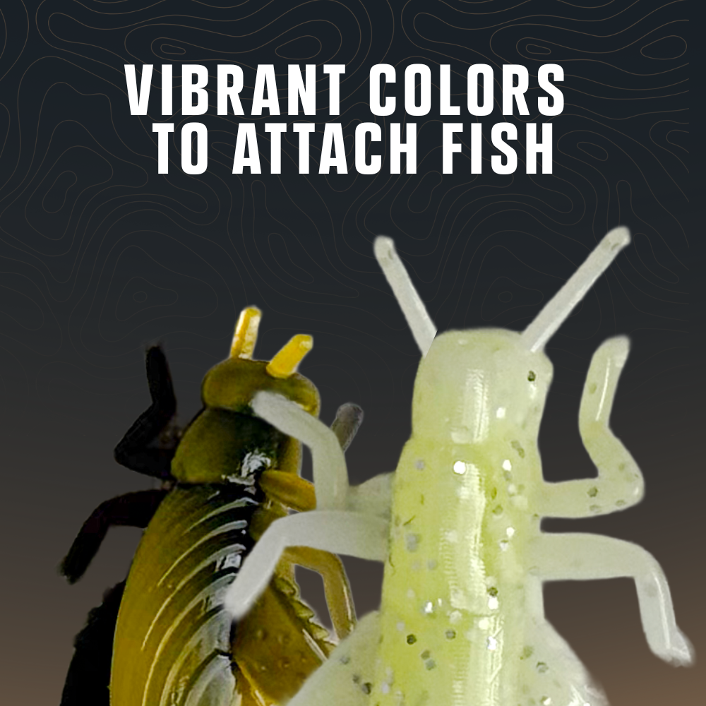 Size: 1.25" Crickets + 1.75" Grasshoppers Pack Count: 10 total (5 of each) Best for: Finesse setups, creeks, and picky bass